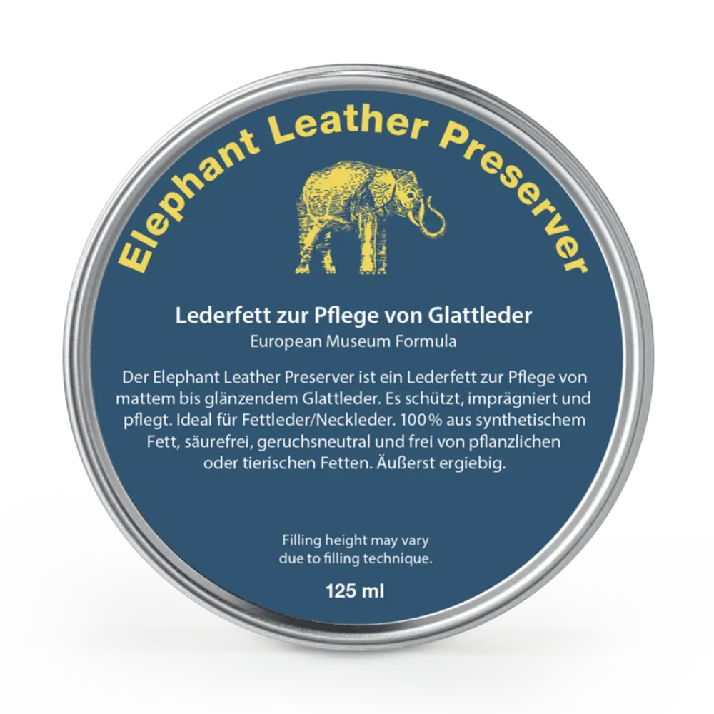 Colourlock Elephant Leather Preserver 125ml – vosak za obnovu kože je visokokvalitetna mast za dugotrajnu njegu i zaštitu glatke kože. Namijenjena je svim vrstama glatke kože, od mat do sjajne završne obrade, a posebno se ističe kod “masne” (pull-up, waxed, greased) kože, gdje učinkovito obnavlja prirodan izgled i elastičnost.