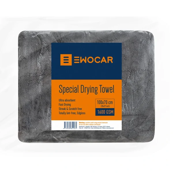 Ewocar Special Drying Towel 50x80cm 1800GSM ručnik za sušenje je ručnik od mikrofibre iznimne gustoće za brzo i sigurno sušenje vozila. Maksimalna upojnost omogućuje sušenje bez tragova i ogrebotina. Ovo je ručnik najveće težine u našoj ponudi, idealan za velika vozila.