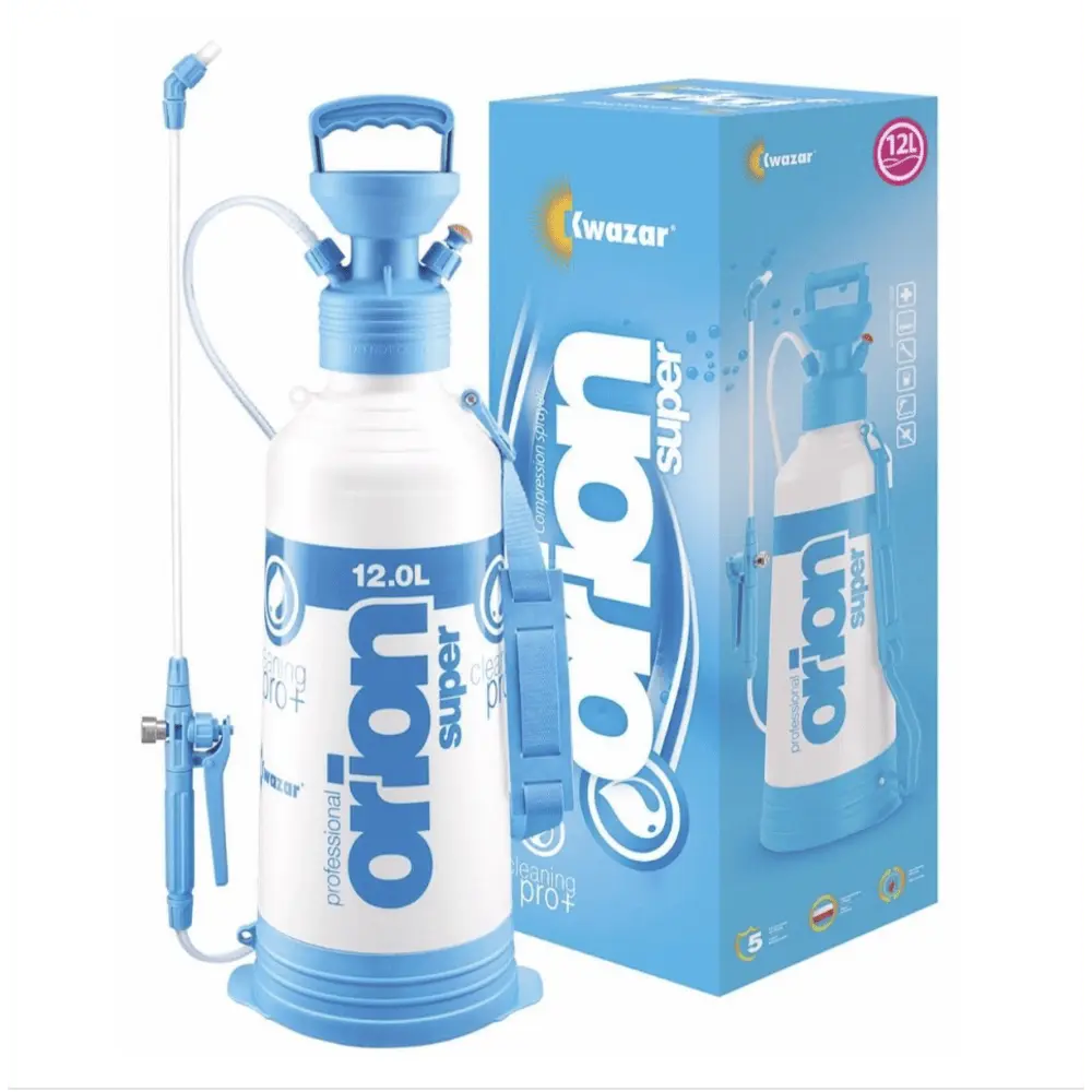 Kwazar Orion Super Pro+ tlačna prskalica je pouzdana ručna tlačna prskalica većih dimenzija za profesionalce i zahtjevne hobiste. Uz nekoliko funkcija koje ubrzavaju rad i povećavaju sigurnost, Orion Super Pro+ je odličan izbor za nanošenje APC-a, odmašćivača, sredstva za čišćenje felgi, uklanjanje kamenca, predpranje vozila, čišćenje fasada i podova i ostalih tekućina za čišćenje.