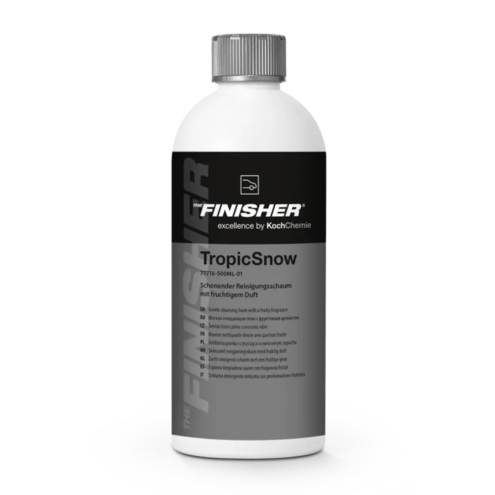 The Finisher – TropicSnow 500ml aktivna pjena je visokoučinkovita pjena za predpranje vozila koja omekšava i uklanja prljavštinu prije ručnog pranja. U potpunosti je sigurna za sve premaze na vozilu.
